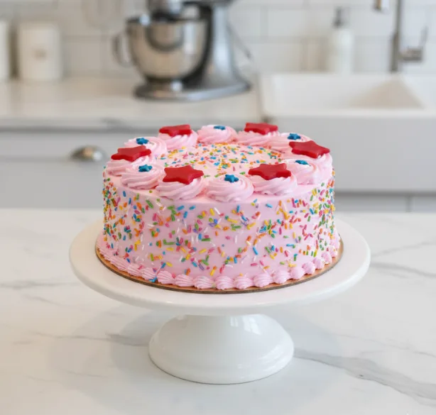 Enjoy the indulgent blend of fluffy whipped cream and luscious strawberry filling in every slice, beautifully finished with creamy, elegant toppings.